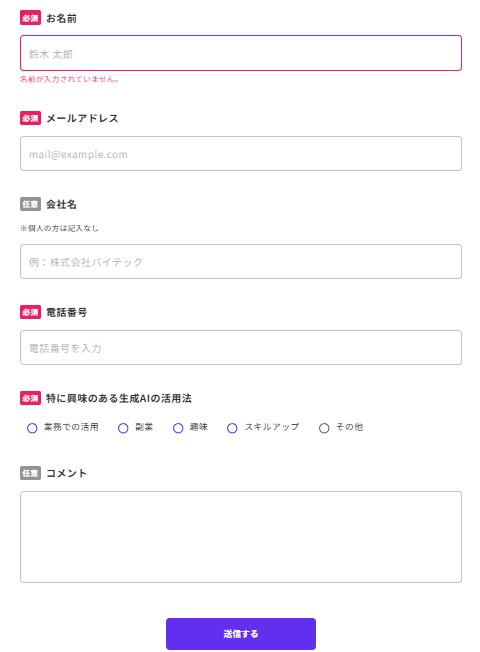 バイテック生成AIの無料相談の申し込みはスマホ・PCから30秒で完了します。