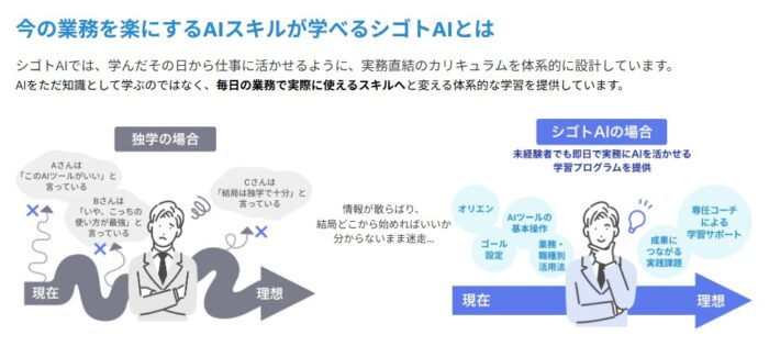 シゴトAIは「仕事で成果を出す」ことに特化したAIスクール