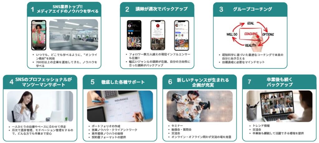 講師陣はもちろん、代表の九島さん自身もインフルエンサーとしての発信実績があり、完全な匿名運営ではない点は安心材料です。