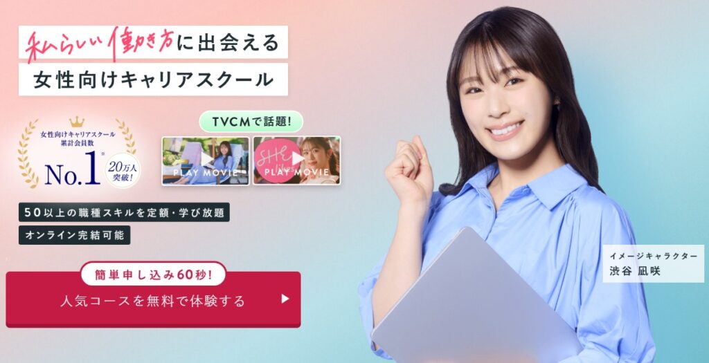 | SHElikes | ・女性向けスクール ・モチベ維持×キャリア支援が魅力 | ・Webデザイン ・ライティング 他 50以上の職種スキル (2025年10月31日時点) | 月額制(約1.6万円〜) +入会金162,800円 (分割払い可) ※受講プランによる |