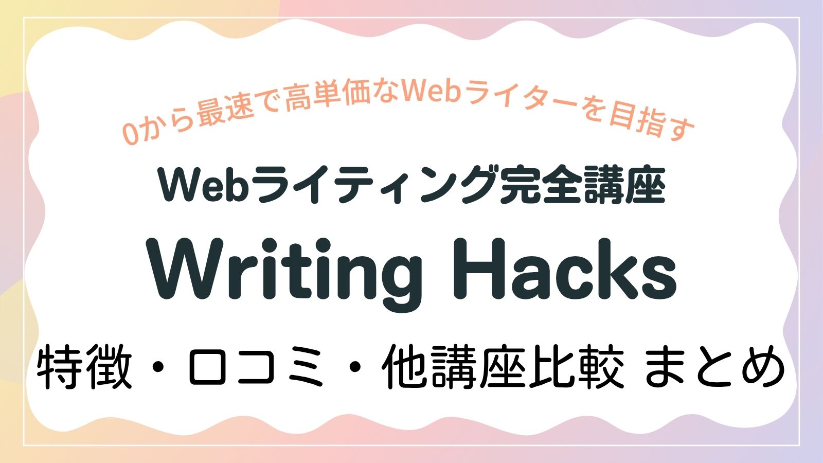 この記事では、Writing Hacksの口コミ・料金・学べる内容・メリット・デメリット・他講座との違いをまとめて確認できます。